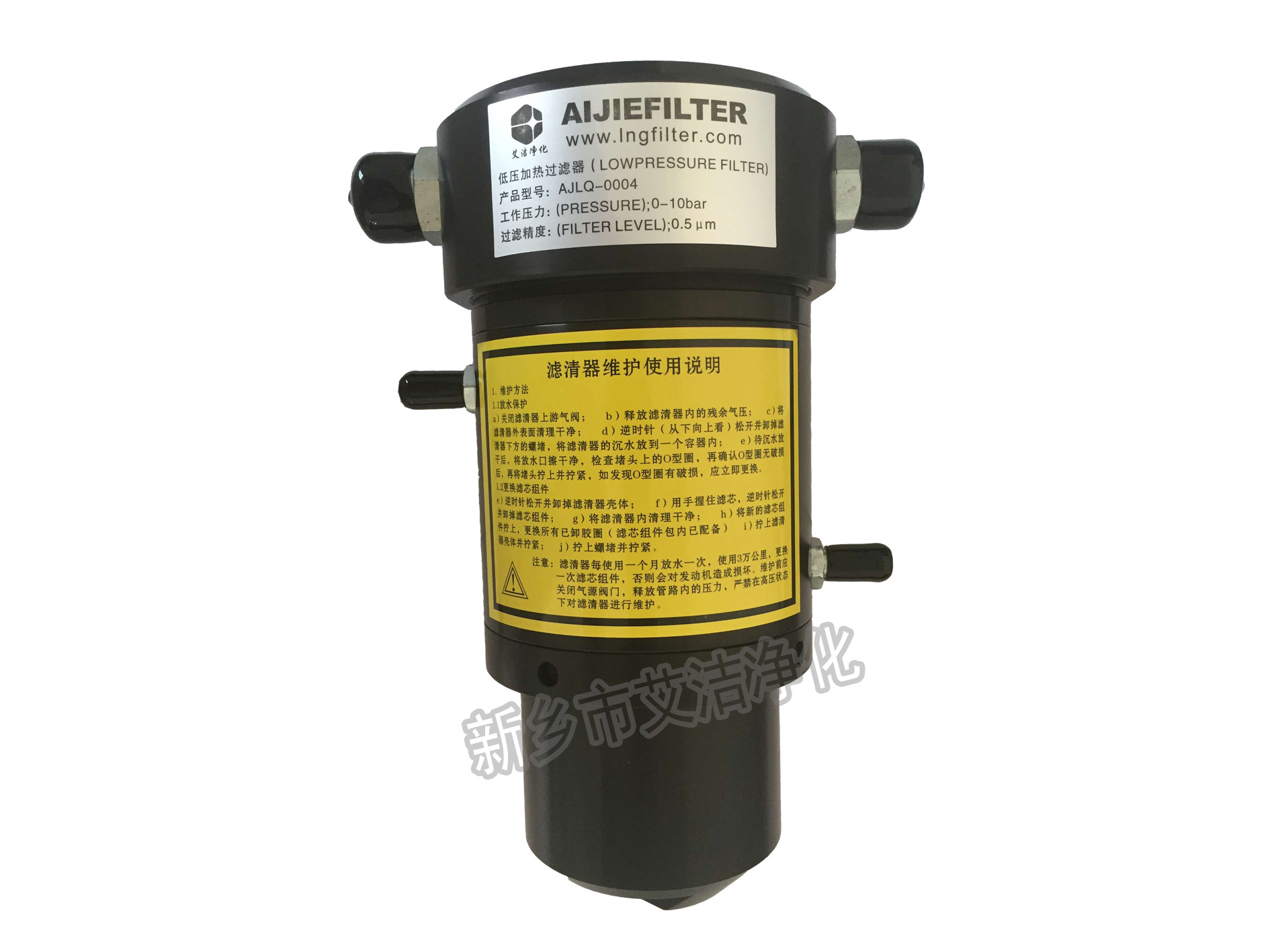 AJLQ-0004低壓天然氣濾清器是天然氣濾清器的一種,主要由一級(jí)旋風(fēng)分離器、二級(jí)慣性除沫器預(yù)濾和凝聚、三級(jí)精濾芯凝聚、排污閥等組成,夾帶液體和固體顆粒的天然氣,由進(jìn)氣管以切線方向進(jìn)入一級(jí)旋風(fēng)分離器。經(jīng)過(guò)旋風(fēng)分離,較大的液滴和固體顆粒被分離出來(lái)。然后,經(jīng)過(guò)二級(jí)除沫器,氣體通過(guò)慣性碰撞作用下,氣、液、過(guò)進(jìn)一步分離。氣體中顆粒較大的塵埃被濾除,對(duì)后級(jí)精濾芯起保護(hù)作用。氣體通過(guò)精濾芯(第三級(jí)精濾),粒徑大于0.3~0.6微米(或更細(xì))的固體顆粒被濾除;并凝聚成較大的液滴,在重力作用下,沉降到精濾管底部。分離出來(lái)的液體由各排污口排出,經(jīng)處理的天然氣由過(guò)濾器頂端的出氣口輸出。